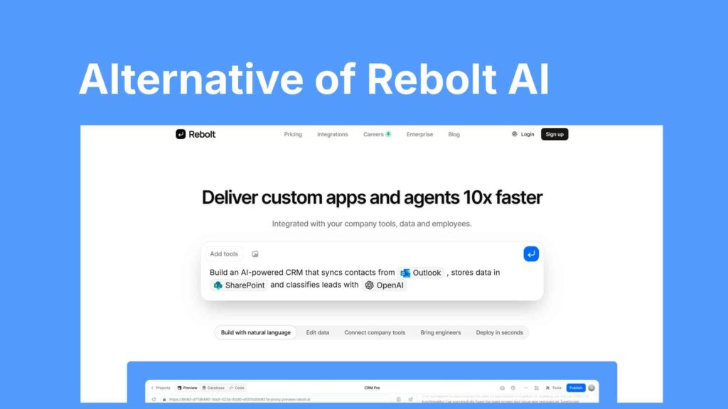 What is Rebolt AI?How Rebolt worksKey features Pricing Real Use Cases Pros Cons Five possible alternatives to Rebolt AIMicrosoft Azure Copilot StudioAWS Bedrock AgentCore LlamaIndexFlowise AIRetool What is the best way to start Rebolt AI Conclusion